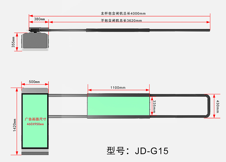 3、特殊設計的連桿傳動機構,始終使閘桿 90°運行。