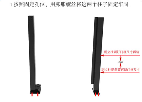 1、按照固定孔位用膨脹螺絲將這個兩個柱子固定。