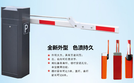 曲桿道閘采用了折彎設計,由兩部分欄桿通過機械構件連接而成,升起之后會自動折疊成90度彎折,而不受建筑物高度的影響,主要適用于有高度限制的地下停車場。