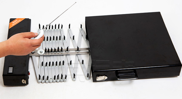 阻車器是一款便攜阻車裝置,在需要使用的時候打開鋪在道路上,阻車器通過扎破汽車的輪胎以達到阻停行駛車輛的目的。