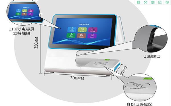 訪客機內置公安部推出的第二代身份證閱讀器,自動讀取居民身份證芯片中的文字、人臉及指紋特征信息。