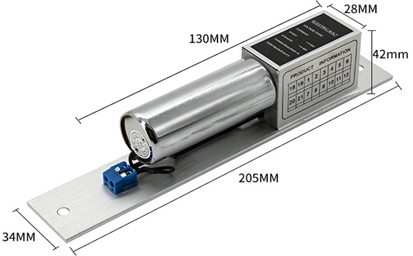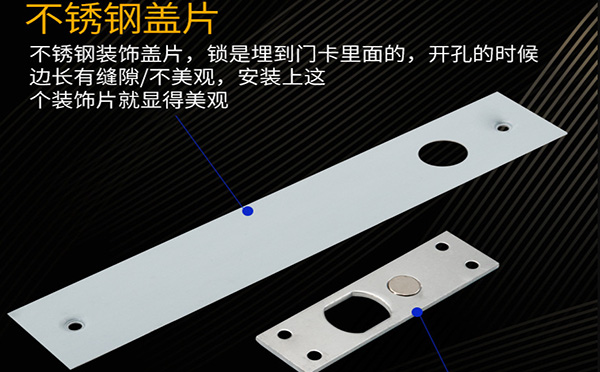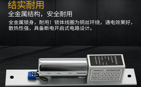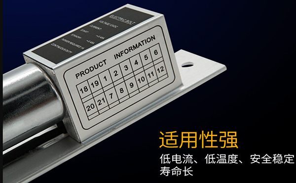 電插鎖是一種電子控制鎖具,由鎖體和鎖扣板兩部分組成,安裝在門框橫梁內(nèi)部及門扇頂部,通過電流的通斷驅(qū)動鎖舌的伸出或縮回以達(dá)到鎖門或開門,可與門禁系統(tǒng)配套使用。
